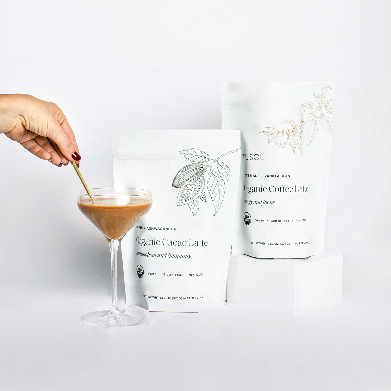 TUSOL smoothies are filled with 20g plant protein, 29+ superfoods, 16+ adaptogens,